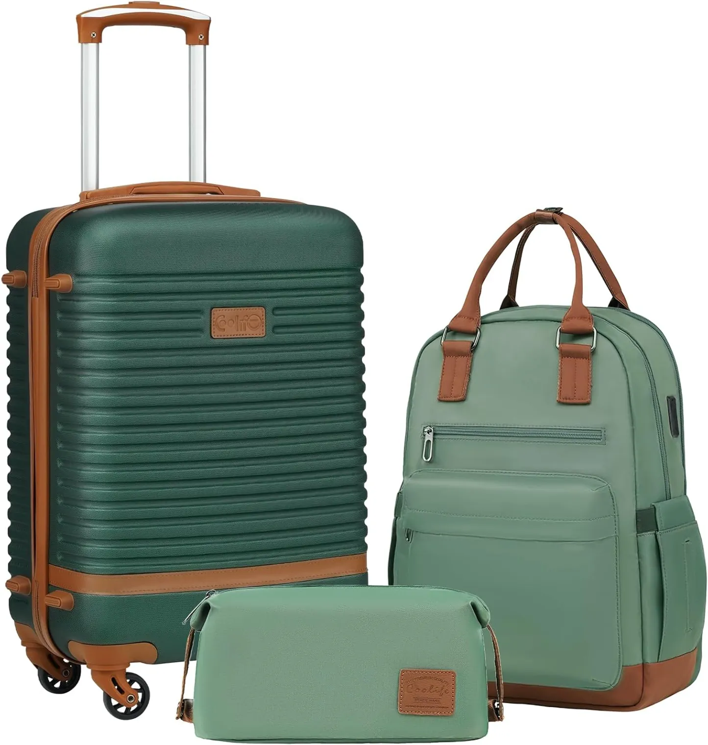 Coolife 3 Piece Luggage Set Carry On Suitcase with Hardside Durable TSA Lock Spinner Wheels (BP/TB/20)